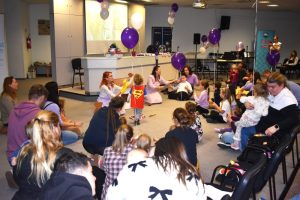 Az ünnepi köszöntőket követően Karisné Dudás Mónika meseterapeuta mondott mesét a kicsiknek, majd kiegészülve Rábaközi Ritával, Kizlinger Katalinnal, Sári Katával és Sári Attilával egy dalos-mondókás-bábozós Ringató foglalkozásra várták a gyermekeket és szüleiket. Az ünnepségről a születésnapi torta sem hiányzott, melyet a jelenlévőkkel közösen fogyasztottak el, a rendezvény zárásaként pedig kórházunk előtt közösen daloltak, miközben a remény lila fényébe öltözött főbejáratunk.