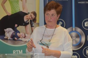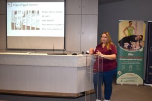 A tanfolyam záró előadásában Domán-Mihály Barbara és Gállfy Anna kangatrénerek a baba-mama torna jelentőségéről beszéltek és rendszeres mozgásra invitálták a kismamákat.