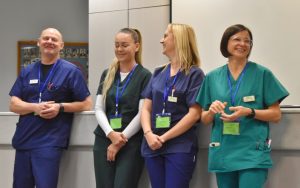 A fiataloknak lehetősége nyílt beszélgetni szakdolgozóinkkal is, Krämer Konrád aneszteziológiai vezető asszisztens és munkatársai, Sebesi Dóra, Vas Vivien és Börcsök Csilla szakasszisztens arról mesélt, hogy miért ezt a pályát választották, miért szeretnek az egészségügyben dolgozni és miként találták meg ezen a szakterületen hivatásukat.