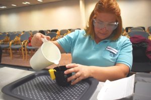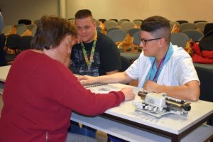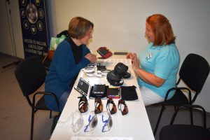 Két másik állomás a mindennapos életvitelt segítő eszközökkel ismertette meg az érdeklődőket. Kipróbálhatták a folyadéköntést a folyadékszint jelzővel, megismerhették a színfelismerő készülék, a beszélő vércukormérő, illetve a beszélő vérnyomásmérő használatát is. Nagyon különös tudást is szerezhettek kollégáink a foglalkozáson: a fémpénzek „vakon” történő felismerésének technikáját sajátíthatták el az egyesület tagjainak segítségével. Mint megtudtuk, nemcsak a pénz mérete és súlya, de élének recézettsége is információt ad, a kétszínű érmék anyagváltása pedig szintén segíti a beazonosítást.