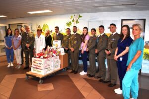 A két betegellátó egység munkatársai számára olasz húsvéti kalácsot hoztak ajándékba és jókívánságaikat fejezték ki, különösen azon kollégáink számára, akik az ünnepi hétvégén is a betegek ellátásán, gyógyításán dolgoznak. Hálásan köszönjük parancsnok úrnak és az alakulat tagjainak a kedves gesztust és a húsvéti finomságokat. Köszönjük elismerő szavaikat, öröm számunkra, hogy elégedettek kórházunk betegellátó tevékenységével. Külön köszönet Murányi Rita tolmácsnak, aki a mostani látogatás során is segítette a kapcsolattartást és a kommunikációt az olasz vendégekkel.