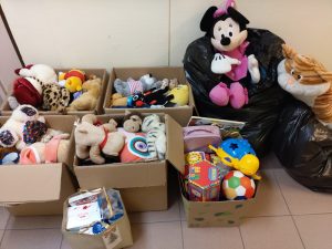 Munkatársaink folyamatosan és nagy szeretettel osztják szét a gyermekek között a sok-sok kedves holmit, hiszen minden ajándék gazdára talál, örömet szerezve a nálunk gyógyuló apróságoknak és családjuknak.