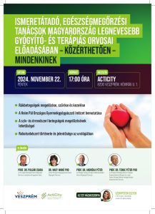 A Csolnoky Ferenc Kórház – együttműködve a szervező Veszprém Megyei Jogú Város Önkormányzatával – tisztelettel invitál minden érdeklődőt az „Ismeretátadó, Egészség-megőrzési Tanácsok Magyarország Legnevesebb Gyógyító- és Terápiás Orvosai Előadásában – Közérthetően – Mindenkinek” című egészségnapra, melyen az ország kiemelkedő szakemberei osztják meg közérthető, mindennapi életbe illeszthető egészség-megőrzési tanácsaikat. Az eseményen való részvétel nemcsak informatív, de inspiráló is lesz mindenki számára – ígérik a szervezők.