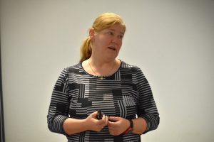 Gyopáros Adrienn védőnő a várandósság harmadik trimeszterének élettani változásairól beszélt, részletesen ismertetve a magzat fejlődésének jellemzőit és az édesanya szervezetében végbemenő változásokat. Tájékoztatást adott a leggyakrabban előforduló tünetekről és azok csökkentésének lehetőségeiről, a várandósság harmadik szakaszában végzett vizsgálatokról és sok gyakorlati tanácsot is megosztott a kismamákkal. Előadása második felében a kisbaba megszületését követő időszakban várható élettani változásokat ismertette.