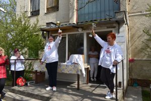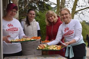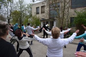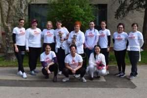 Az üdvözlő szavak után azonnal mozgásba lendültek a résztvevők, egy zumba edzéssel melegített be a lelkes csapat, akik között szép számmal voltak ellátottak, de orvosok, szakdolgozók és egyéb feladatokat ellátó munkatársaink is bekapcsolódtak a közös sportolásba. Az ismert, vidám világslágerekre komponált koreográfiák mindenkit jókedvre derítettek, így a bemelegítő edzés megalapozta a nap jó hangulatát.